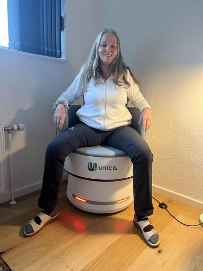 Pelvic Chair arbejder ud fra magnetisk stimulation som ganske enkelt laver 12.000 bækkenbundsøvelser på de 28 min., du sidder på stolen, hvor ringmuskel samt blære stimuleres effektivt.